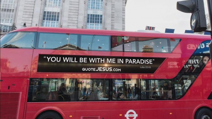 La campagne «Quote Jesus», «Citer Jésus» en français, affichera des versets de la Bible sur les bus de Londres à Pâques. Le but de la campagne est de «redonner de l’espoir» selon les organisateurs. Howard Conder, en charge du projet, explique que d’après lui le manque d’espoir de la société vient du fait que les nouvelles générations n’ont que peu de connaissance de la Bible.